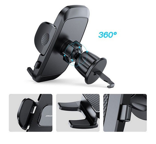 JOYROOM autós tartó (szellőzőre, állítható, 360°, 4.7-6.9" méret) FEKETE