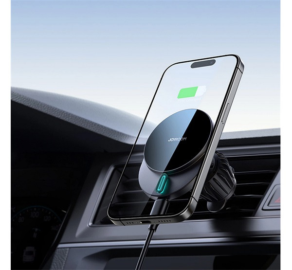 JOYROOM autós tartó (szellőzőre, mágneses, gyorstöltő, 15W, wireless, LED jelzés) FEKETE