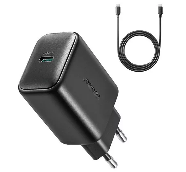 JOYROOM hálózati töltő Type-C aljzat 25W, PD gyorstöltő 3.0 + Type-C kábel, FEKETE