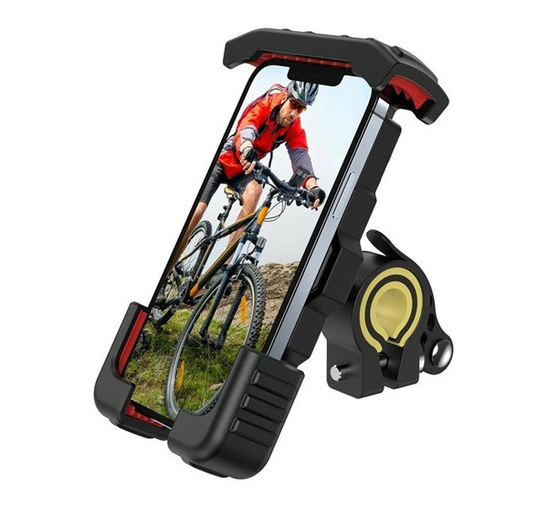 JOYROOM kerékpáros és motoros telefontartó (kormányra rögzíthető, ütésállóság, 4.7 - 6.8" méret) FEKETE/PIROS