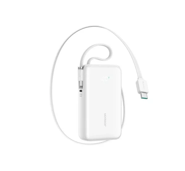 JOYROOM vésztöltő Type-C aljzat (10000mAh, 35W, PD gyorstöltő 3.0, LED kijelző + fix Type-C kábel) FEHÉR