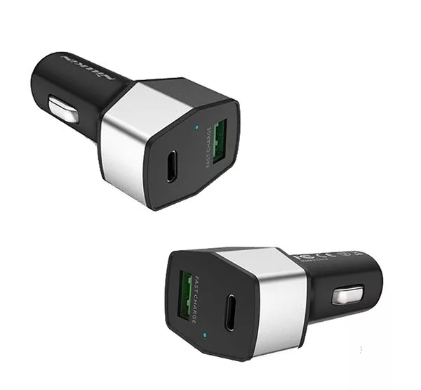 NILLKIN CELERITY autós töltő USB+Type-C aljzat 12W, PD gyorstöltő 3.0, EZÜST