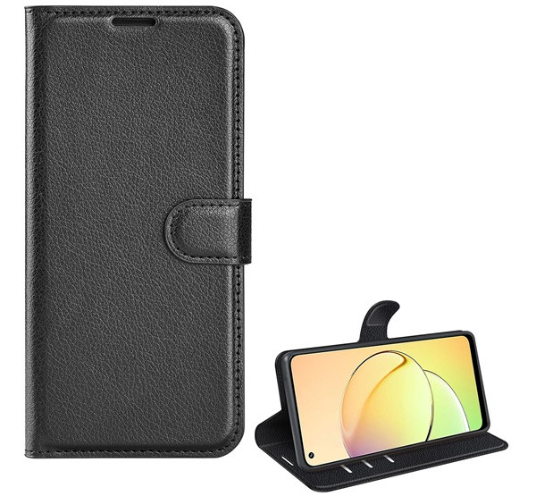 Realme 10 GIGAPACK tok álló, bőr hatású FLIP, prémium, FEKETE