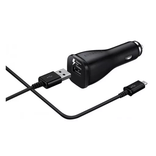 SAMSUNG autós töltő USB aljzat 10W, gyorstöltő + ECB-DU4EBE microUSB kábel, FEKETE