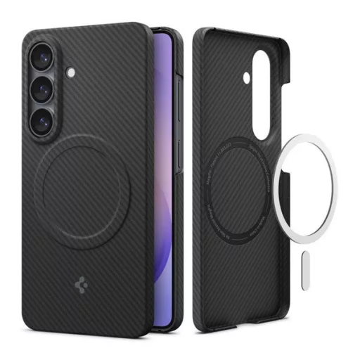 SPIGEN AIR SKIN ARAMID MAGSAFE műanyag telefonvédő (ultravékony, mágneses, karbon minta) FEKETE