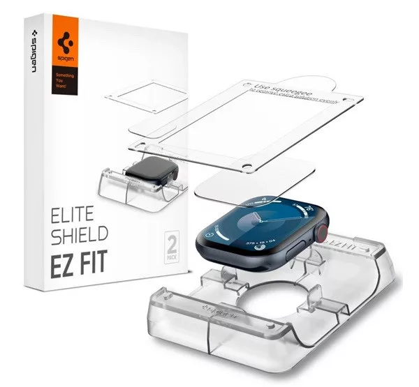 Apple Watch Series 11 42mm SPIGEN ELITE SHIELD EZ FIT kijelzővédő fólia 2db full screen, PET + segédkeret, ÁTLÁTSZÓ