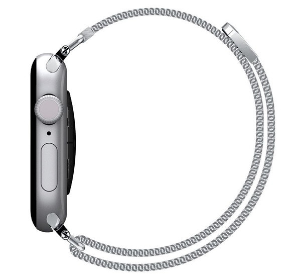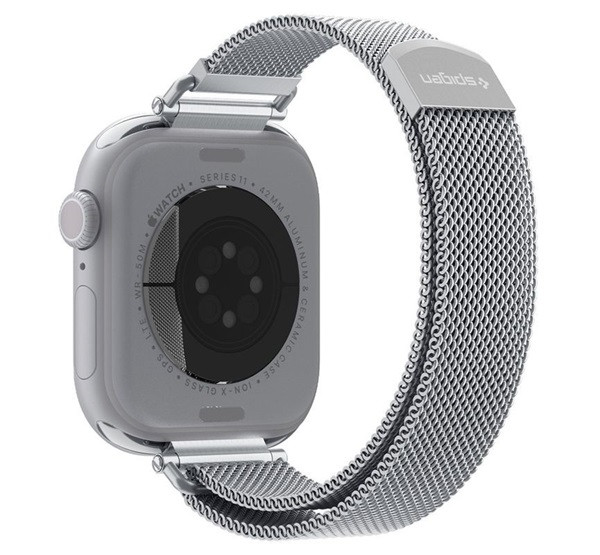 Apple Watch Series SE 3 40mm / 11 42mm / 10 42mm SPIGEN METAL BAND pótszíj egyedi méret, mágneses, EZÜST