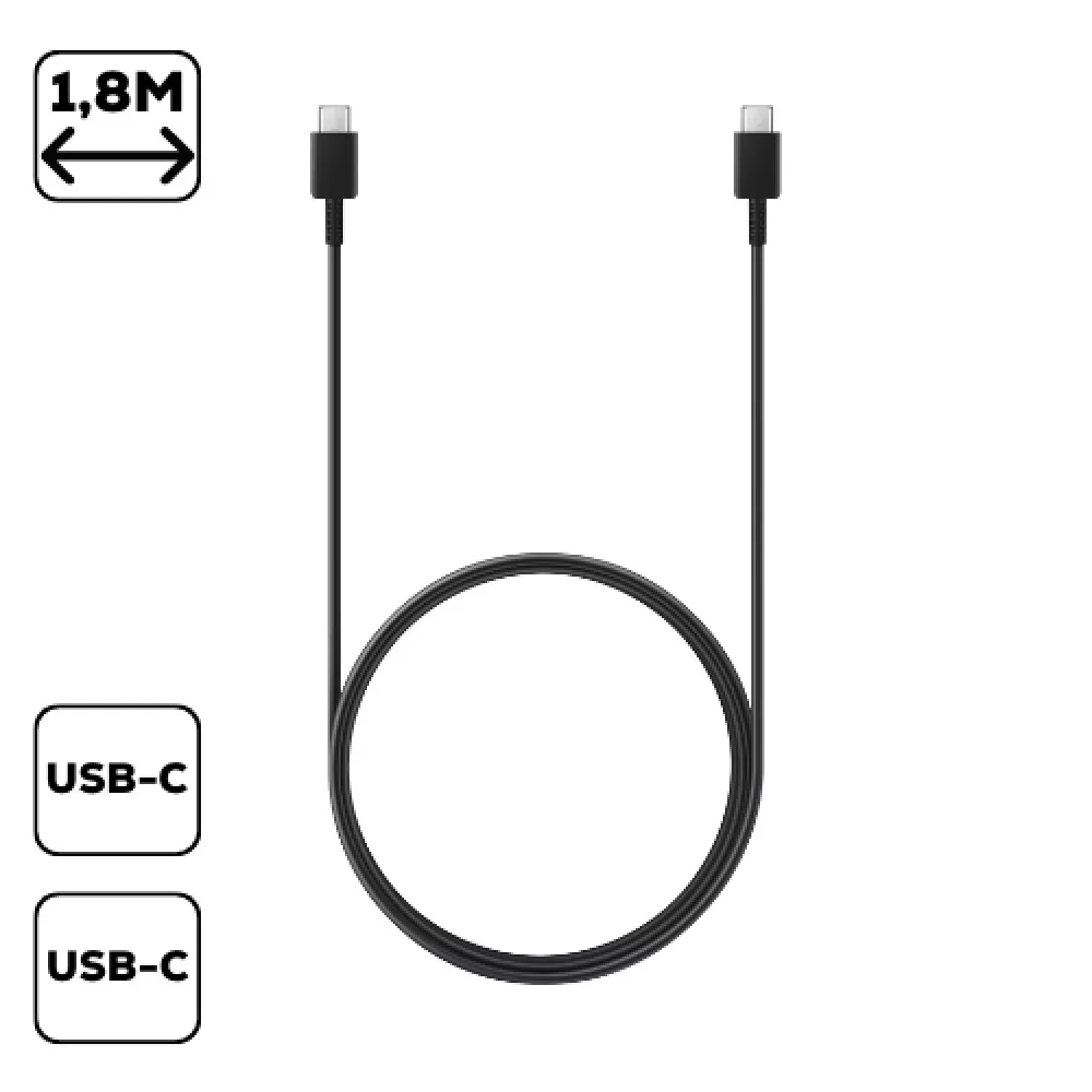 Samsung EP-DX510JBEG USB-C - USB-C adat- és töltőkábel (1.8m, fekete) A Samsung EP-DX510JBEG egy eredeti, kiváló minőségű USB-C - USB-C kábel, amely kifejezetten a legújabb Samsung okostelefonokhoz, táblagépekhez és más, USB-C porttal rendelkező eszközökhöz lett tervezve. Ez a kábel tökéletes választás, ha a leggyorsabb, akár 45W-os Szupergyors Töltést is támogatni szeretnéd. Főbb jellemzők: Csatlakozók: USB Type-C mindkét végén, ami garantálja a problémamentes csatlakozást, és nem kell figyelned a kábel irányára. Kábelhossz: A kényelmes 1,8 méteres hosszúság extra szabadságot biztosít, így kényelmesen használhatja a készülékét töltés közben is. Töltési teljesítmény: Támogatja a Super Fast Charging 2.0 (45W-ig) és a Super Fast Charging (25W-ig) technológiát, így optimális teljesítményt nyújt a kompatibilis készülékekhez. Adatátvitel: A kábel USB 2.0 szabványt használ, akár 480 Mb/s sebességű adatátvitelre is képes, így a fájlok szinkronizálása is gyorsan megy. Kompatibilitás: Ideális a Super Fast Charging technológiát támogató Samsung Galaxy készülékekhez, de más, USB-C porttal rendelkező eszközökkel is használható. Szín: Letisztult, elegáns fekete színű kivitel. Válassza a Samsung EP-DX510JBEG kábelt, ha egy megbízható, tartós és a lehető leggyorsabb töltési megoldást keresi USB-C-s eszközeihez!