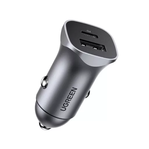 UGREEN CD130 autós töltő USB+Type-C aljzat 24W, gyorstöltő, SÖTÉTSZÜRKE