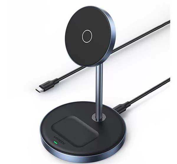 UGREEN CD317 asztali töltő 2in1 (7.5W, gyorstöltő, wireless, MagSafe, Apple Airpods töltő, Qi2) FEKETE