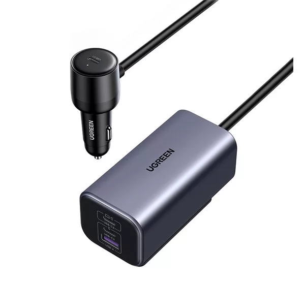 UGREEN EC706 autós töltő USB+3 Type-C aljzat (150W, PD gyorstöltő, GaN, 100cm) FEKETE