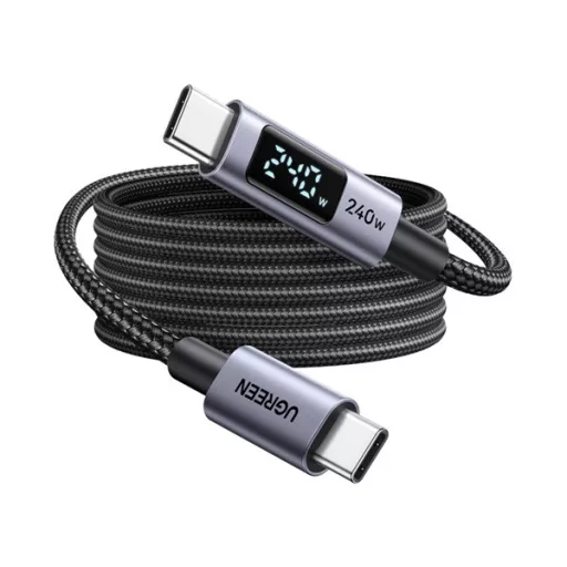 UGREEN L530 adatkábel (Type-C - Type-C, 240W, PD gyorstöltő, LED kijelző, cipőfűző, 300cm) FEKETE