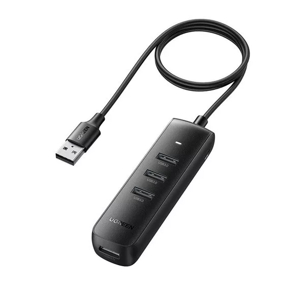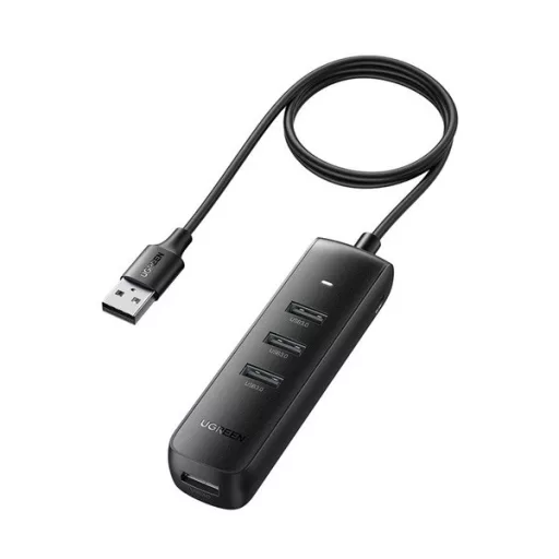 UGREEN Type-C HUB 5in1 (aktív, elosztó, 4 USB+Type-C aljzat, 25cm) FEKETE