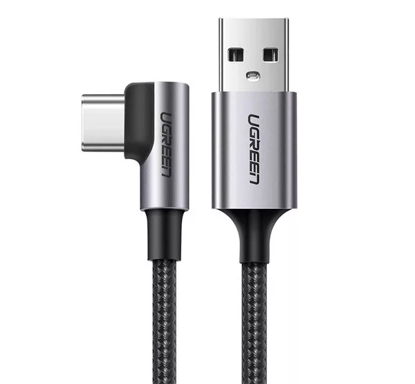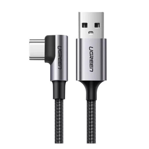 UGREEN US284 adatkábel (USB - Type-C, 15W, gyorstöltő 3.0, 90 fokos, cipőfűző, 300cm) FEKETE