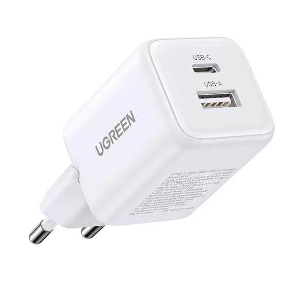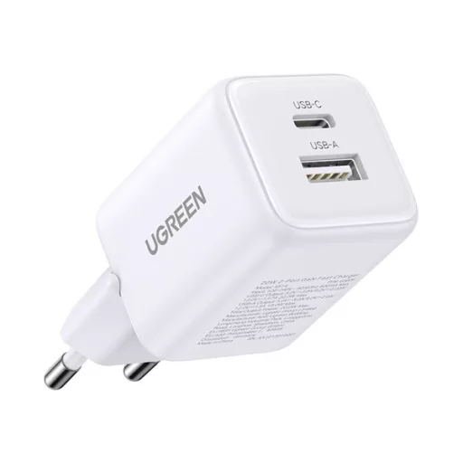 UGREEN X514 hálózati töltő USB+Type-C aljzat (20W, GaN, PD gyorstöltő) FEHÉR
