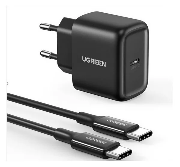 UGREEN hálózati töltő Type-C aljzat 25W, PD gyorstöltő + Type-C - Type-C kábel, FEKETE