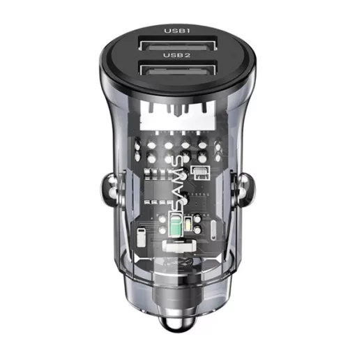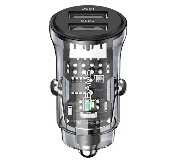 USAMS C31 autós töltő 2 USB aljzat (15W, PD gyorstöltő) FEKETE