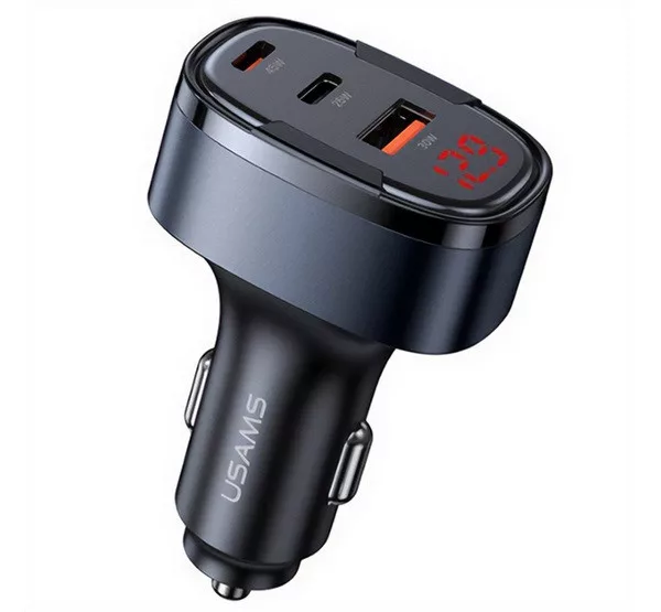 USAMS C42 autós töltő USB+2 Type-C aljzat 100W, LED kijelző, FEKETE