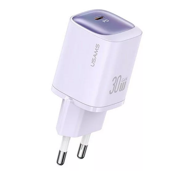 USAMS CC251 hálózati töltő Type-C aljzat 30W, PD gyorstöltő, LILA