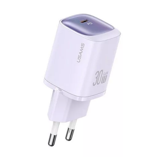 USAMS CC251 hálózati töltő Type-C aljzat (30W, GaN, PD gyorstöltő) LILA