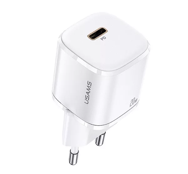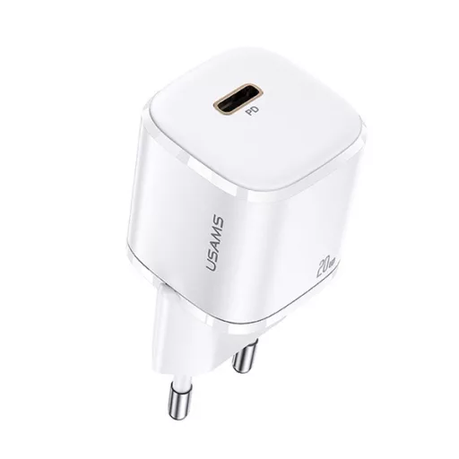 USAMS T36 hálózati töltő Type-C aljzat (20W, PD gyorstöltő, GaN) FEHÉR