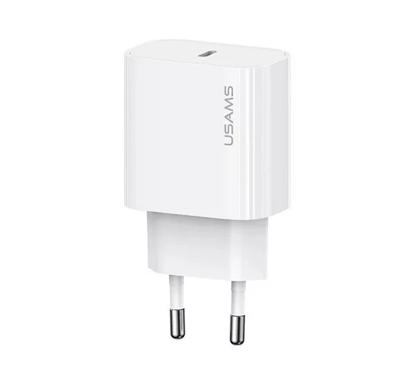 USAMS T65 hálózati töltő Type-C aljzat 20W, PD gyorstöltő, FEHÉR