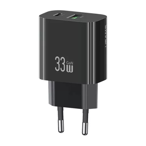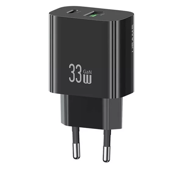 USAMS T65 hálózati töltő USB+Type-C aljzat 33W, PD gyorstöltő, FEKETE