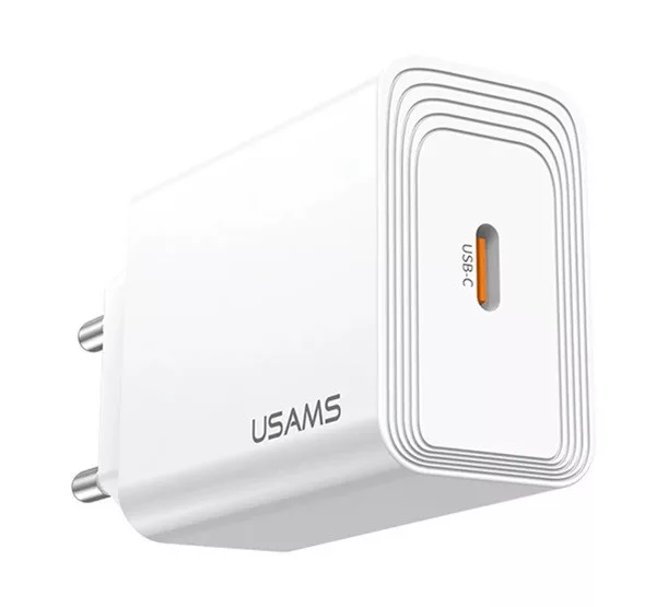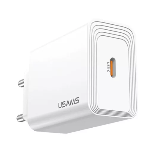 USAMS T69 hálózati töltő Type-C aljzat (30W, PD gyorstöltő 3.0) FEHÉR