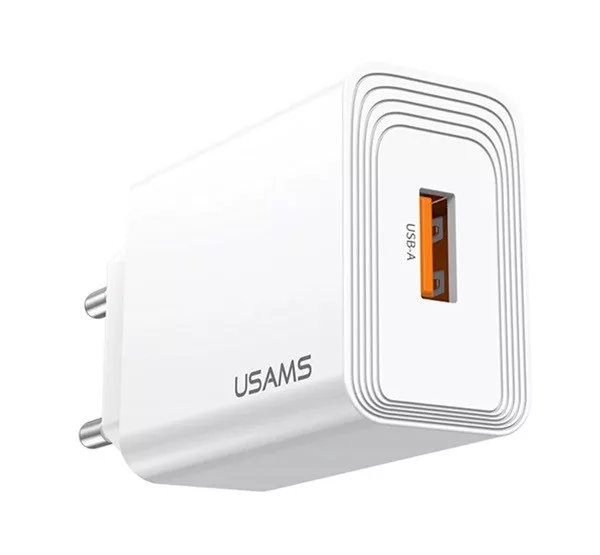 USAMS T69 hálózati töltő USB aljzat 18W, gyorstöltő 3.0, FEHÉR