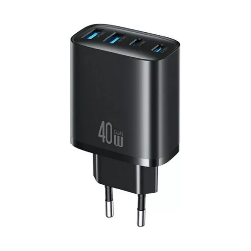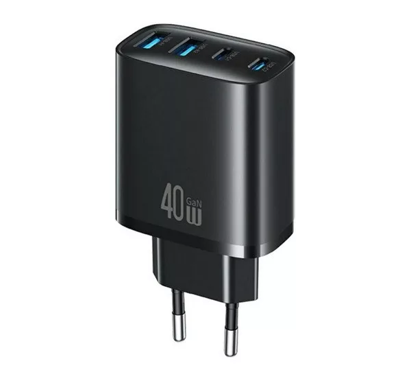 USAMS T70 hálózati töltő 2 USB+ 2 Type-C aljzat (40W, GaN, PD gyorstöltő) FEKETE