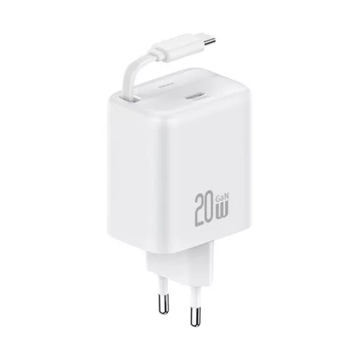 USAMS YC hálózati töltő Type-C aljzat (20W, PD gyorstöltő, GaN + fix, csévélhető Type-C kábel) FEHÉR