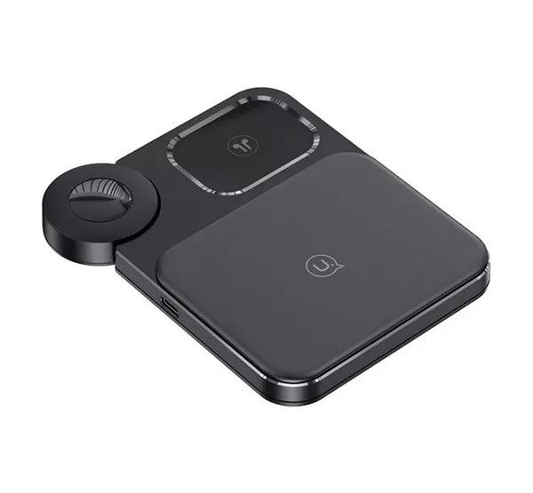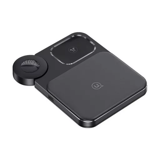 USAMS asztali töltőállvány 3in1 15W, Apple Watch töltő, FEKETE