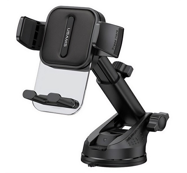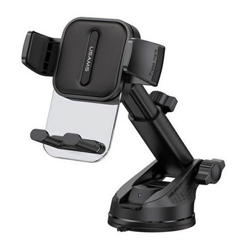 USAMS autós tartó (műszerfalra, szélvédőre, tapadókorongos, gravitációs, állítható, 4.7-7.2" méret, hosszú kar) FEKETE