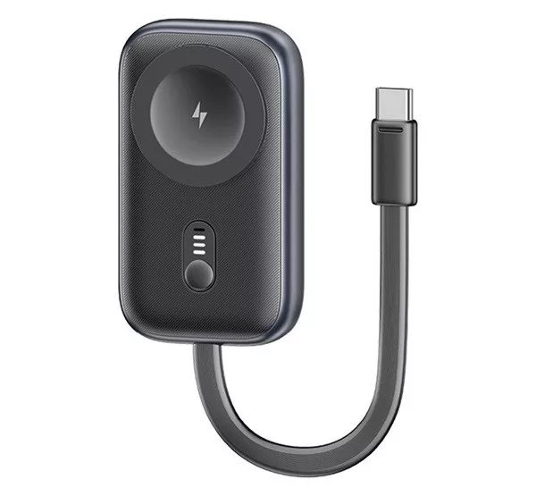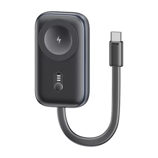 USAMS vésztöltő (1200mAh, 2.5W, gyorstöltő, MagSafe, Apple Watch töltő, LED jelzés + fix Type-C kábel) FEKETE