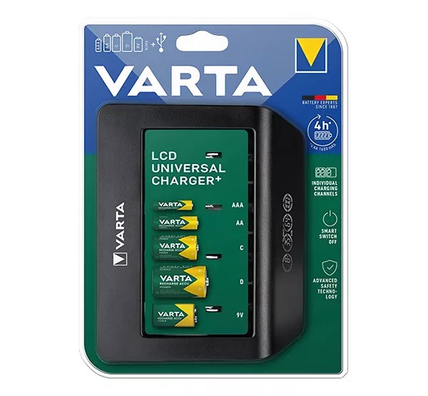 VARTA LCD UNIVERSAL MULTI CHARGER+ akkutöltő (240V, AAA/AA/C/D/9V elem kompatibilis, LED kijelző) FEKETE
