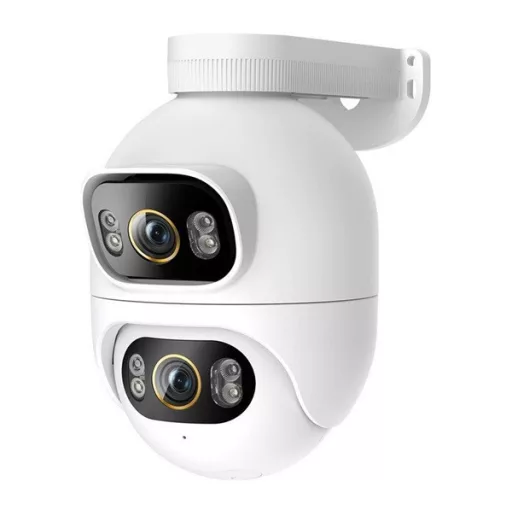 Kettő helyett egy kamerát szerezzen be. A beépített kettős lencse két irányba figyel, így két képet szolgáltat az alkalmazáson belül. Az alsó lencse elfordul az emberek követéséhez, akár 360°-os megfigyelési szöget biztosítva a mozgás észlelésekor az AI segítségével.