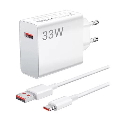 XIAOMI MDY-12-EA hálózati töltő USB aljzat 33W, PD gyorstöltő + Type-C kábel, FEHÉR
