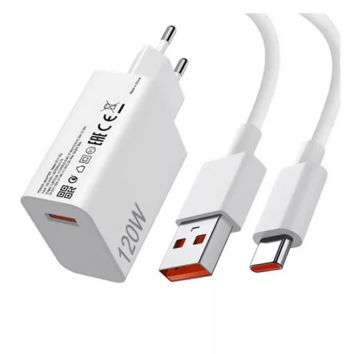XIAOMI MDY-16-EN hálózati töltő USB aljzat 120W, PD gyorstöltő + Type-C kábel, FEHÉR