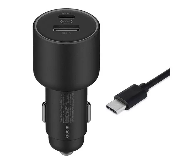 XIAOMI Mi autós töltő USB+Type-C aljzat 67W, gyorstöltő + Type-C kábel, FEKETE