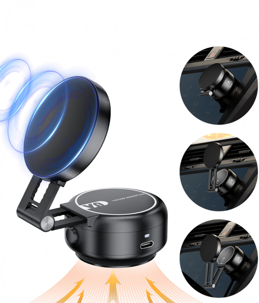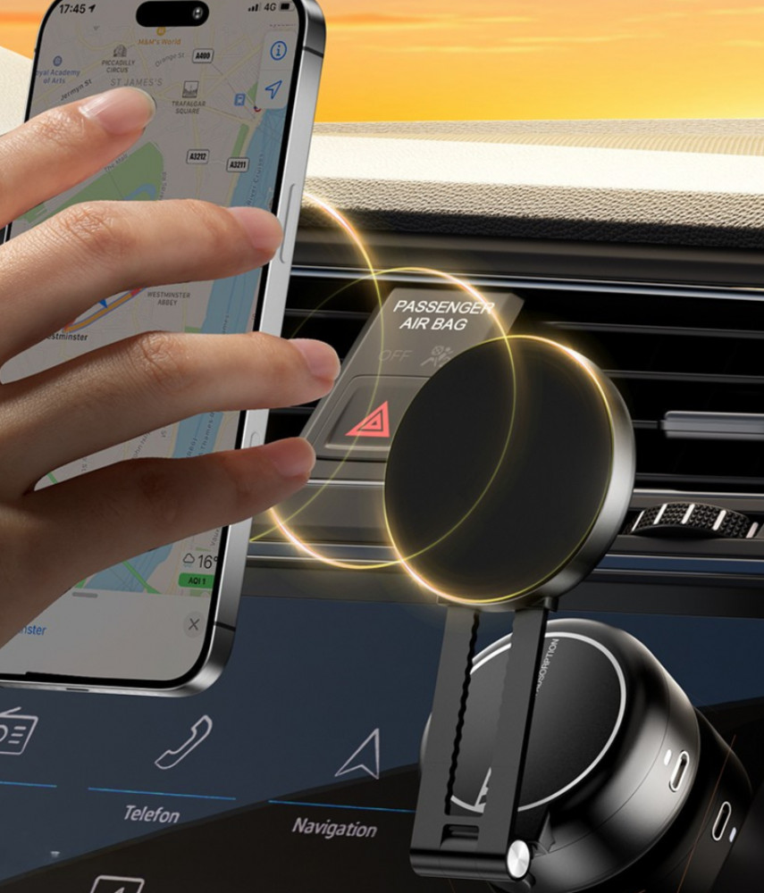 Sokoldalú rögzítés: Szilikon alapú vákuumos tapadókorong a sík felületekre, és mágneses rögzítés a telefonhoz.