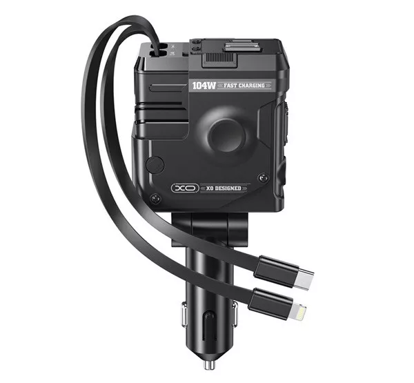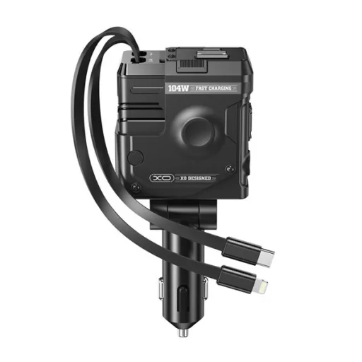XO CC66 autós töltő USB+Type-C aljzat (104W, PD gyorstöltő + fix Type-C+Lightning kábel) FEKETE