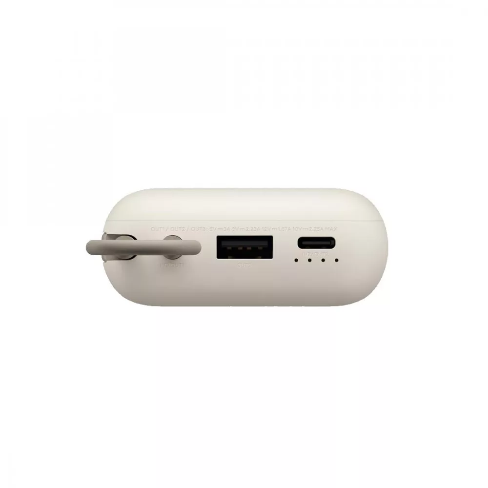 Beépített töltőkábelA powerbank egy 22.5W kétirányú Type-C gyorstöltő kábellel van felszerelve, amely megkönnyíti az utazást azáltal, hogy egyszerűsíti az eszközök és a powerbank töltését.Friss szín opciókAz alacsony telítettségű színek a minimalista dizájnnal társulva prémium és megkülönböztető megjelenést kölcsönöznek ennek az utazási tárgynak. A tok PC+ABS anyagból készült, és kényelmes fogást biztosít.Kompakt powerbank nagy kapacitássalA nagy, 10000 mAh kapacitás elegendő elektronikáid teljes feltöltésére, még maradék energiával további szükségleteidhez. Nincs többé aggodalom a töltés miatt útközbenAz akár 22.5W teljesítményű gyorstöltés gyorsan feltölti elektronikáid, és támogatja a két irányú gyorstöltést is, így a töltési idő mindössze 4.5 órát vesz igénybe. Az iPhone gyorstöltési támogatást is tartalmazza, amellyel például egy iPhone 14 mindössze 30 perc alatt feltölthető.Több eszköz egyidejű töltéseA készülék beépített Type-C töltőkábellel, USB Type-C porttal és USB-A porttal rendelkezik, amelyek mindegyike külön töltést támogat, legfeljebb 22.5W kimeneti teljesítménnyel. A több eszköz egyidejű töltése esetén a maximális kimeneti teljesítmény 15W.Megfelel a közönséges eszközök gyorstöltési igényeinekA beépített intelligens felismerő chip automatikusan beállítja a szükséges áramerősséget több eszközhöz. Alacsony áramú töltési támogatásNyomd meg kétszer a gombot az alacsony áramú töltési mód aktiválásához.