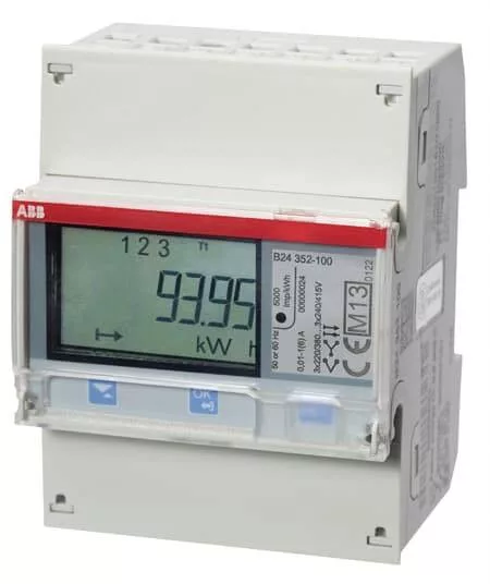 Háromfázisú energiamérő három- vagy négyvezetékes háromfázisú hálózat mérésére CT-átalakító csatlakozáson keresztül (az áramerősség aránya konfigurálható), legfeljebb 6 A. A következő értékek jelennek meg egy hét szegmenses kijelzőn, legfeljebb 7 számjeggyel: Aktív energia (0.5 osztály) és reaktív energia ( 2. osztály) az import és export esetében: teljesítmény, áramok, feszültségek (LL LN), frekvencia, cos phi, teljesítménytényező és látszólagos teljesítmény, fázisonként és összességében egyaránt. A kommunikáció történhet az integrált RS485 interfészen (Modbus RTU) vagy a KNX modul csatlakoztatásához szükséges infravörös interfészen keresztül. Az energiamérőnek 2 állandóan konfigurált be- és kimenete van. A kimenet használható impulzus kimenetként aktív vagy reaktív energia leadására vagy riasztási kimenetként. Legfeljebb 25 riasztási érték (küszöbérték késleltetéssel) állítható be itt. A bemenetek a tarifák szabályozására vagy a külső impulzusok számlálására szolgálnak. A visszaállítható köztes számláló lehetővé teszi az egyes intervallumok mérését. Ezenkívül a mérő akár 4 tarifát is rögzít. A mérőt a MID szerint kalibrálták és az IEC szerint hagyták jóvá. A beépítési szélesség 4 DIN modul.