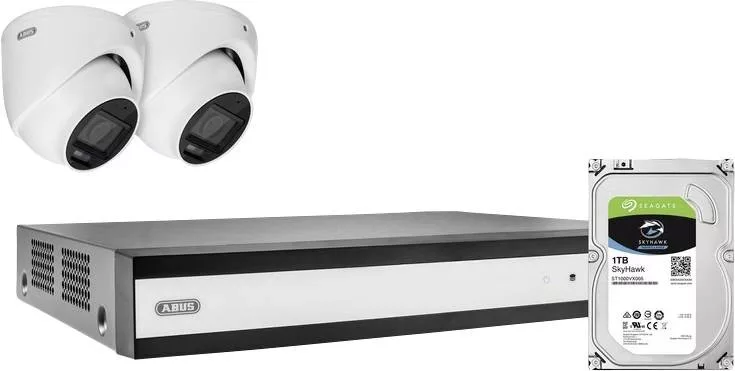 ABUS All-in-One szett TVVR33623D, videorögzítő és 2 analóg mini dómkamera, intelligens személy- és járműérzékelés, böngészővezérlés PC-n