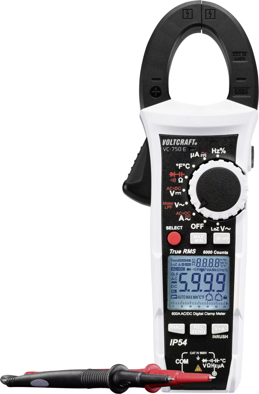 AC/DC lakatfogó és multiméter 600V/AC/DC 600A/AC/DC, Voltcraft VC-750 E