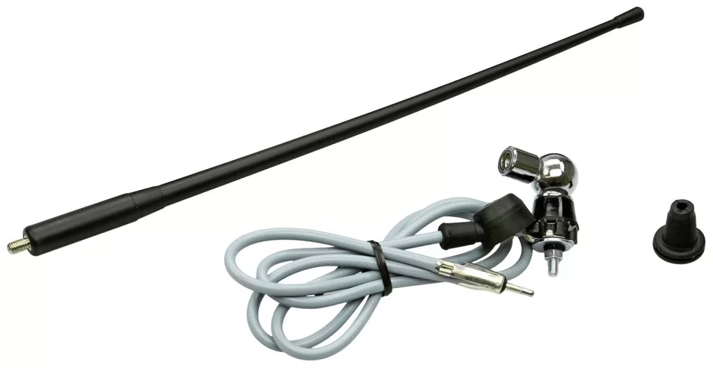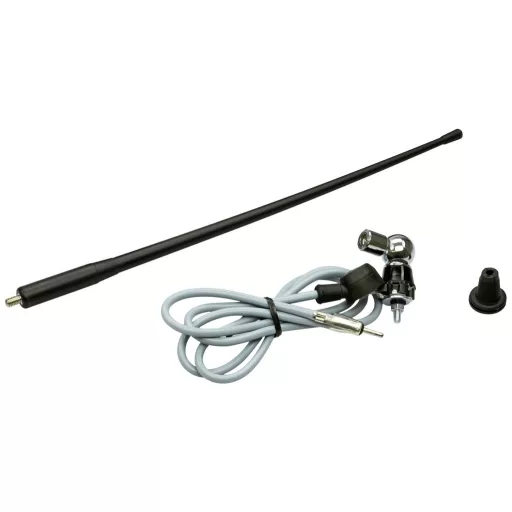 Tetőantenna / univerzális antenna AM/FM AM/FM passzív Beépítési hely: tető / sárvédő / univerzális Furat: Ø 9mm Antenna rúd: 38,5 cm gumirúd dőlésszöge: 0° - 180° AM/FM csatlakozókábel: 120 cm DIN(m)