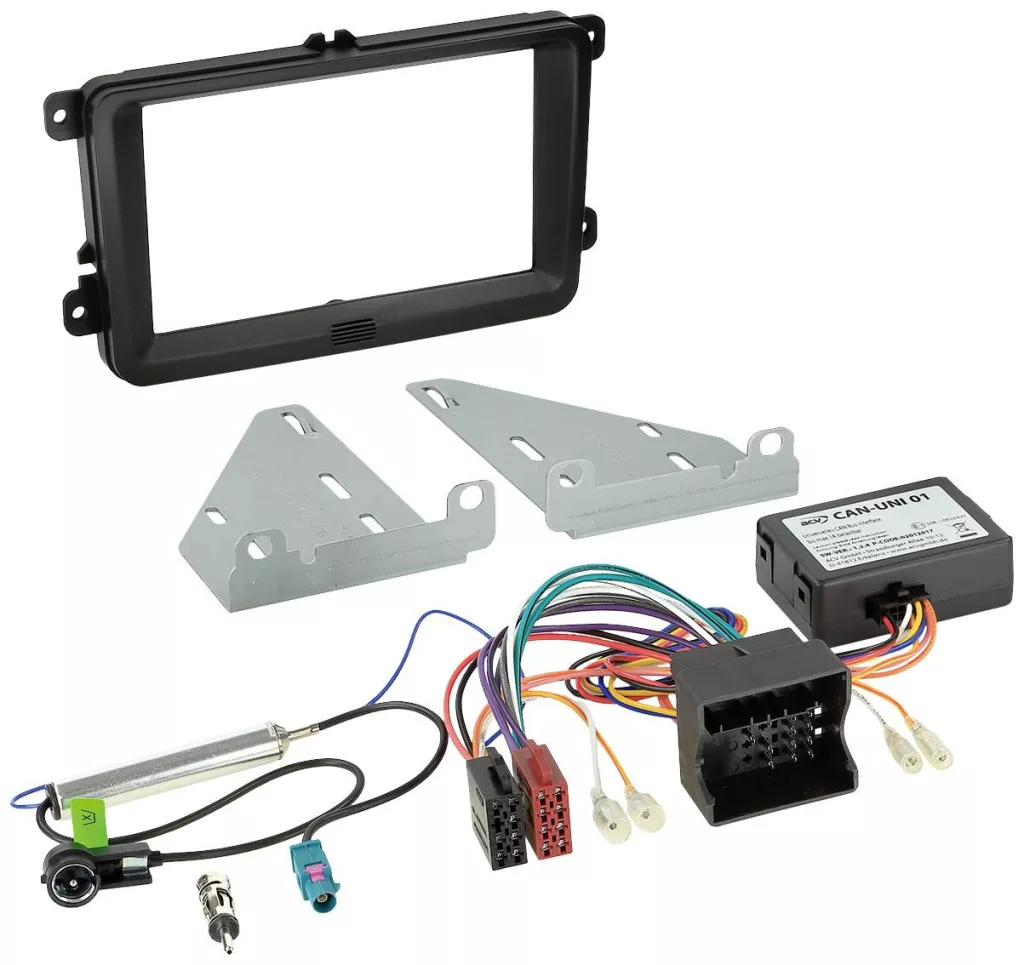 Rádió előlap 2-DIN és rádiócsatlakozó készlet Seat / Skoda / VW Sok autógyártó szereli be saját járműspecifikus rádióit, amelyek optikailag illeszkednek a középkonzolhoz. A telepítőkészletek tartalmazzák az OEM-eszközök cseréjéhez szükséges összes alkatrészt. A jármű felszereltségétől függően az utólagos felszerelés működtetéséhez és a jármű funkcióinak helyreállításához szükséges összes adapter és interfész a szállítási terjedelem részét képezi. Vegye figyelembe az egyes komponensekre vonatkozó szerelési ajánlásokat. Egyes esetekben a jármű nem minden funkciója támogatott. Például Trailer Assist, E Call vagy más vezetőt segítő rendszerek. Telepítés előtt ellenőrizze a jármű menüjében a különböző beállításokat. A végső összeszerelés előtt ellenőrizze a beállítások működését. Győződjön meg arról, hogy az általunk megadott eredeti gyári rádiók és a feltüntetett adapterek csatlakozói megfelelnek a jármű felszereltségének. Ügyfélszolgálati csapatunk szívesen segít a választásban. 02431-9645-96 support@acvgmbh.de Megjegyzés: CAN-busz csatlakozás: 40 tűs Quadlock VW csatlakozás: Fakra(m) / DIN/ISO A kimenetek akár 1A VW jármű T5-ig terhelhetők VW T5/Touareg hangrendszer aktív rendszeradapterrel Quadlock MQS betét: 13-1424-26 Alkalmas a következő járművekhez: Seat Seat Alhambra (7N) 10/2010 - 2015 Seat Leon (1P/1PN Facelift) 03/2009 - 10/2012 Seat Toledo (KG) 13 -/20 2016 Skoda Skoda Fabia (5J ) 2007/03/2014 - 06/2014Skoda Octavia II (1Z Facelift) 2009/01/2013 - 02/2013Skoda Rapid (NH) 2012/10 - 2015*Skoda Roomster (5J) 05 65 Praktik ) 2007/04 - 04 / 2015 Skoda Superb (3T4) 2008/07 -2015**Skoda Superb (3T5) 2010/01 - 2015**Skoda Yeti (5L) 2009/08 - 2014***VW VW Amarok (2014) ) 2010/03 - 2016VW Amarok (2HS2) 2011/11 - 2016VW Beetle (16/5C1/16/5C7) 2011/11 - 2016VW Beetle (16/5C7) 11/2016V 11/2012K0/2012K01 - 2014VW Caravelle 09/2009 - 2015 VW CC (3CC) 02/2012 - 2016VW EOS (1F) 05/2006 - 2012VW Golf V (1K) 11/2003 - 09/2008V2107 Golf 20 09VW Golf V Plus (1KP) 2005.01. - 2009.02.VW Golf VI (1K) 2008.11.12. - 2012.12.VW Golf VI (1KM) 2009.11. - 2013.04.VW Golf VI (1K) 2011.06.VW Golf VI (1K) 2011.06. Plusz (1KP) 2009.03. - 2014.01.VW Jetta V (1KM) 2005.09. - 2010.10.VW Jetta VI (16) 2011.01. - 2015.VW Multivan 2009.09. - 2015.VW Passat B6 -7 -15 /2010VW Passat B6 (3C5) 08/2005 - 07/2010VW Passat B7 (3C/362) 11/2010 - 10/2014VW Passat B7 (3C/365) 11/2010 - 10/2010 B2010 /2012 - 10/2014VW Passat CC (3C/3CC) 05/2008 - 01/2012VW Polo (6R) 06/2009 - 03/2014VW Scirocco III (13) 08/2008 - Sharan II9 -2014V010 2014VW Tiguan (5N) 09/2007 - 2016VW Touran (1T) 02/2003 - 2015VW T5 Transporter 09/2009 - 2015 Szín: fekete Telepítési kivágás rádió kijelző: 172mm x 98.5mm Seat, Skoda