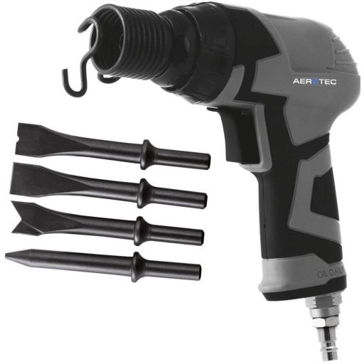 Jellemzők: Robusztus vésőkalapács maráshoz és karosszéria munkákhoz · Tartalmaz. 4 különféle kivitelű véső · Műanyag tokban szállítva · Rendkívül kicsi és szuper praktikus · Gumírozott fogantyú · Pontos munkavégzés · 10 mm-es hatszögletű tartó · Levegő elszívása lefelé.