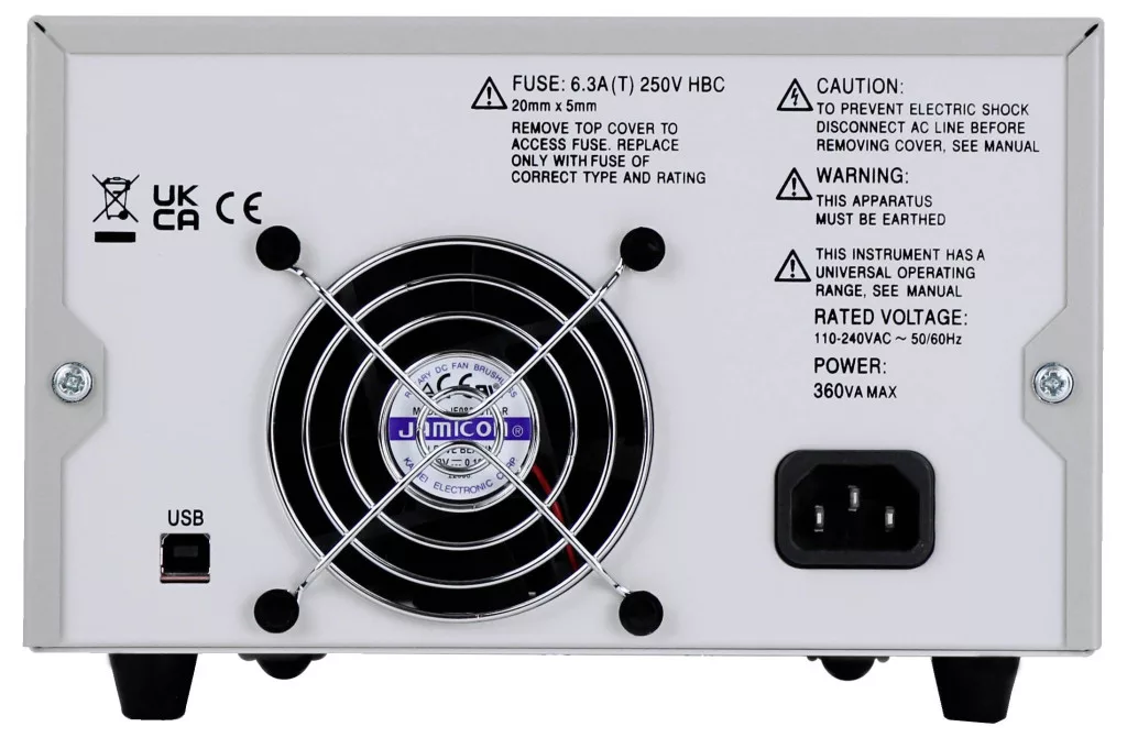 Technical specifications: Hőmérséklet (max.): 40 °C · Hőmérséklet (min.): 5 °C · Kalibrált: Gyári standard (tanúsítvány nélkül) · Kimenetek száma: 3 x · Kimeneti feszültség (max.): 42 V · Kimeneti feszültség (min.): 0 V · Kimeneti feszültség 2 (max.): 42 V · Kimeneti feszültség 2 (min.): 0 V · Kimeneti feszültség 3 (max.): 6 V · Kimeneti feszültség 3 (min.): 0 V · Kimeneti áram (max.): 6 A · Labortápegység jellemzők: Távirányítható,OVP,Vékony kivitel · Min. kimeneti áram: 1 mA · Méret, hossz: 300 mm · Méret, magasság: 140 mm · Méret, szélesség: 214 mm · Súly: 4250 g · Teljesítmény: 246 W · További műszaki adatok: Alacsony nyomású ventilátor 25 beállítási memória Vezérlés forgógombbal, érintőgombbal vagy USB távirányítóval PowerFlex automatikus méréshatár-váltású kimenetek SCPI-kompatibilis