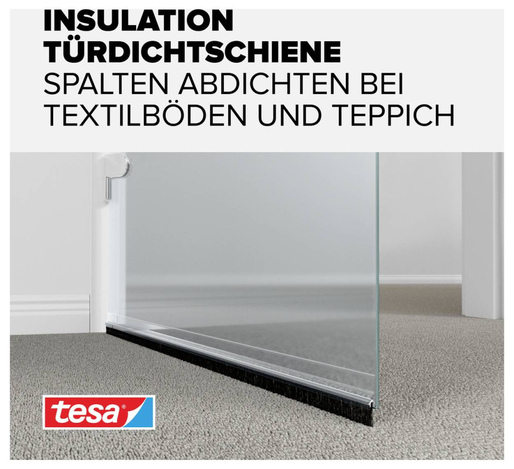 tesamoll® long-lasting, self-adhesive door brush excluders protect from draughts, cold and dust. High quality nylon bristles ensure a perfect seal. For deep-pile carpets. For gaps of up to 15mm. Durability: 6 years.
